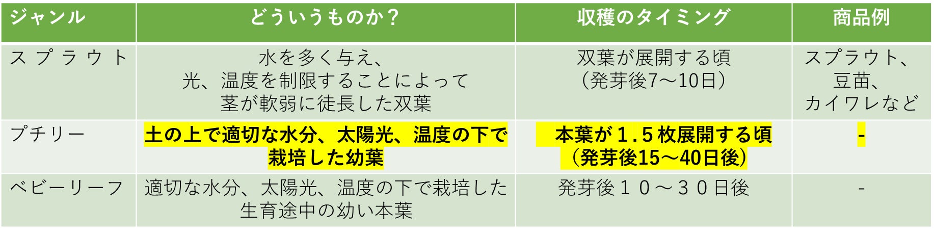 スプラウトやベビーリーフと違う点は作り方と収穫のタイミングです。