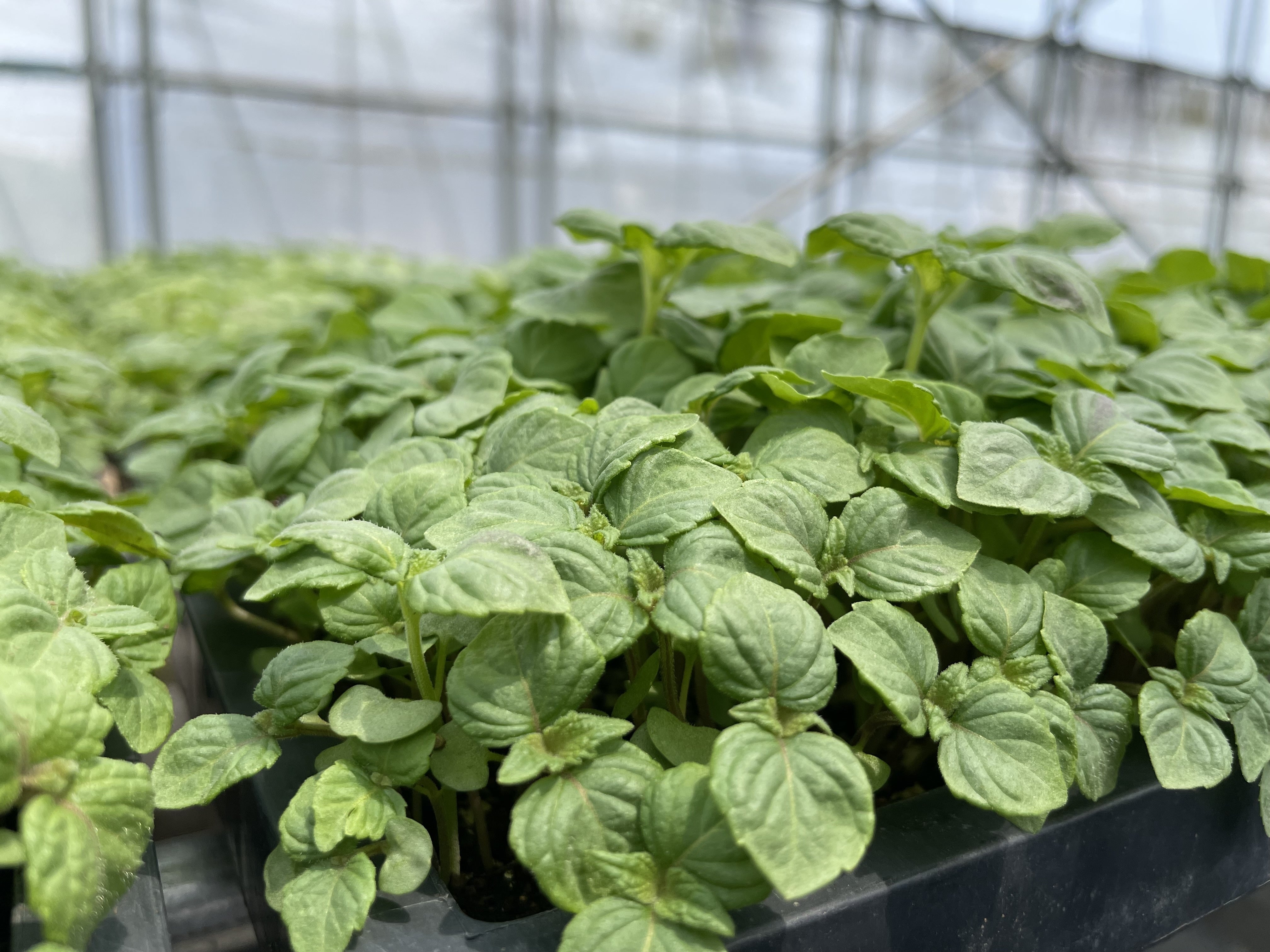 こんにちは。暑い!暑い!です!!ハウスの中も激アツです。われらのプチリーも常に気を付けていないとすぐに水切れで、ダメになってしまうので気が抜けません。写真は青じそです。そんな一日のお昼ご飯にプチリー青じそを使って最後までシソのさっぱり感が続くうどんでもいかがでしょうか。なかなか麺類に色をプラスするのは難しいですが卵黄、明太子とプチリー青じそをパッとのせるだけです!!!多少ですが、野菜も摂取できます!夏は、野菜でしっかりビタミンミネラル補給をして夏バテなく夏を乗り切りましょう♪( ;∀;)
