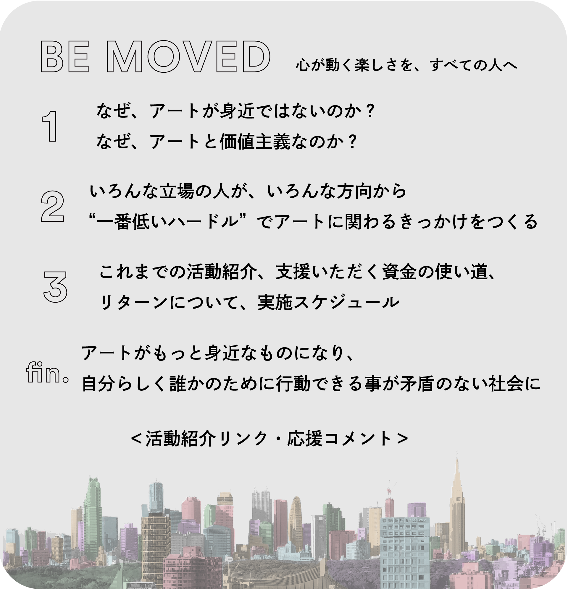 アートにふれることと、自分の内面にある想いから「心が動く楽しさ」を、誰でも気軽に体験してもらえるプラットフォームを作りたいことが私の根っこにある想いです。