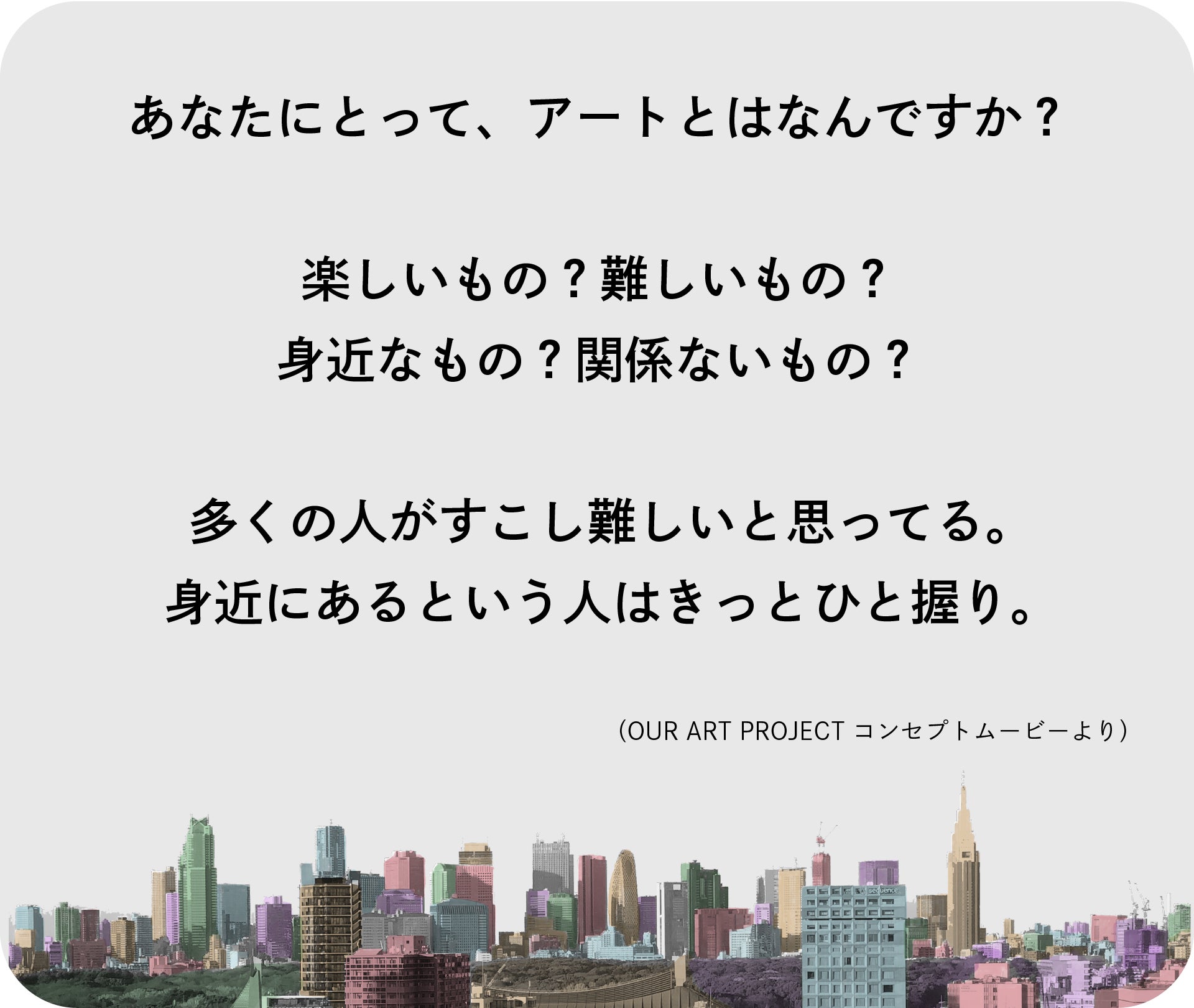 OUR ART PROJECTが広がる事で見える景色は「暮らしの中でアートと出会い、今より もうすこしだけアートに近づいてふれあってみること」です。