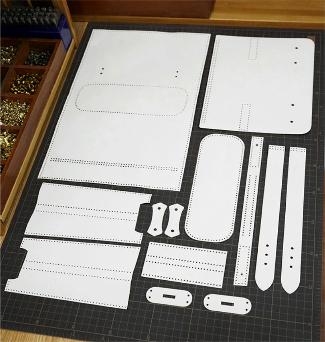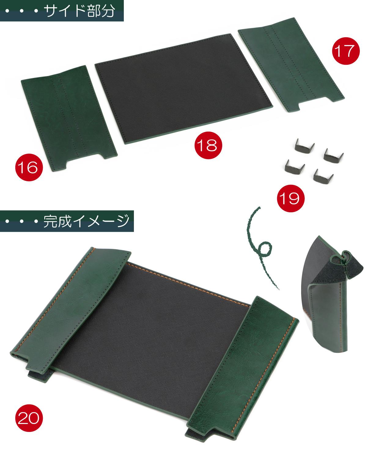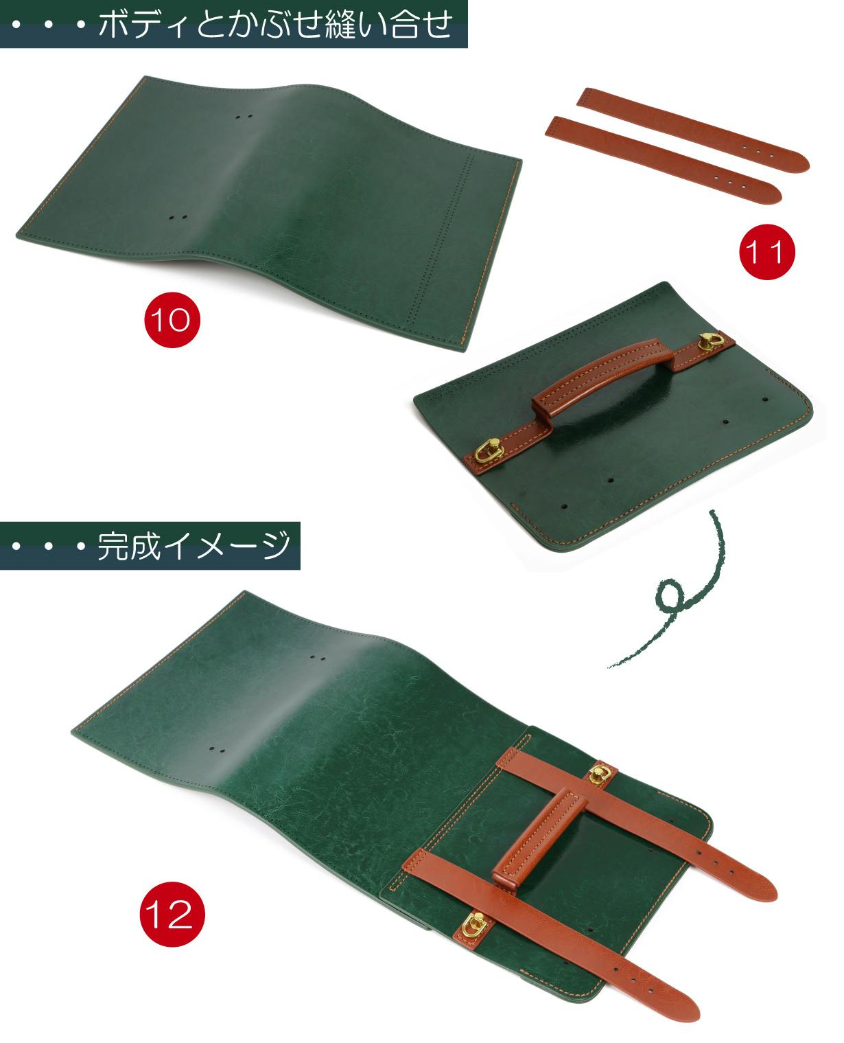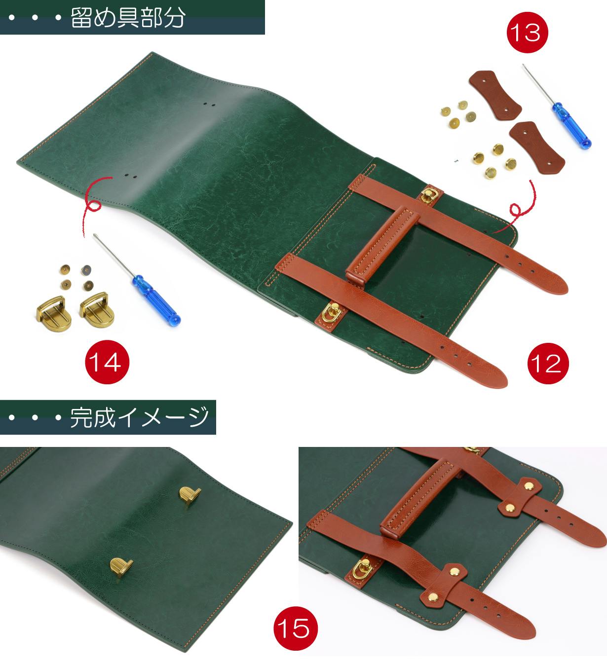 パーツの場所、細かい位置を確認していただいて針と糸で縫製してバッグを完成させていただきます。