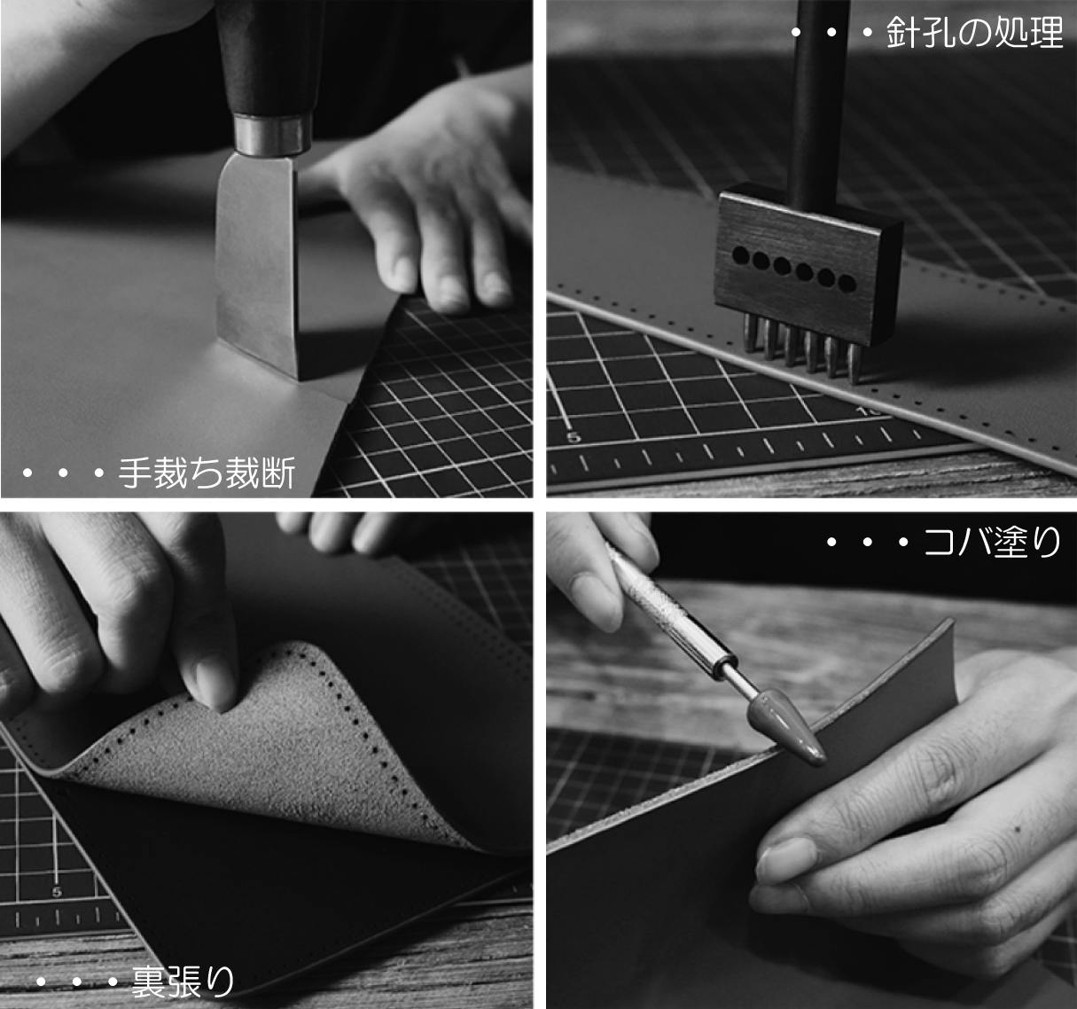 レザーの処理は縫い合わせるだけで完成出来るよう加工しております。