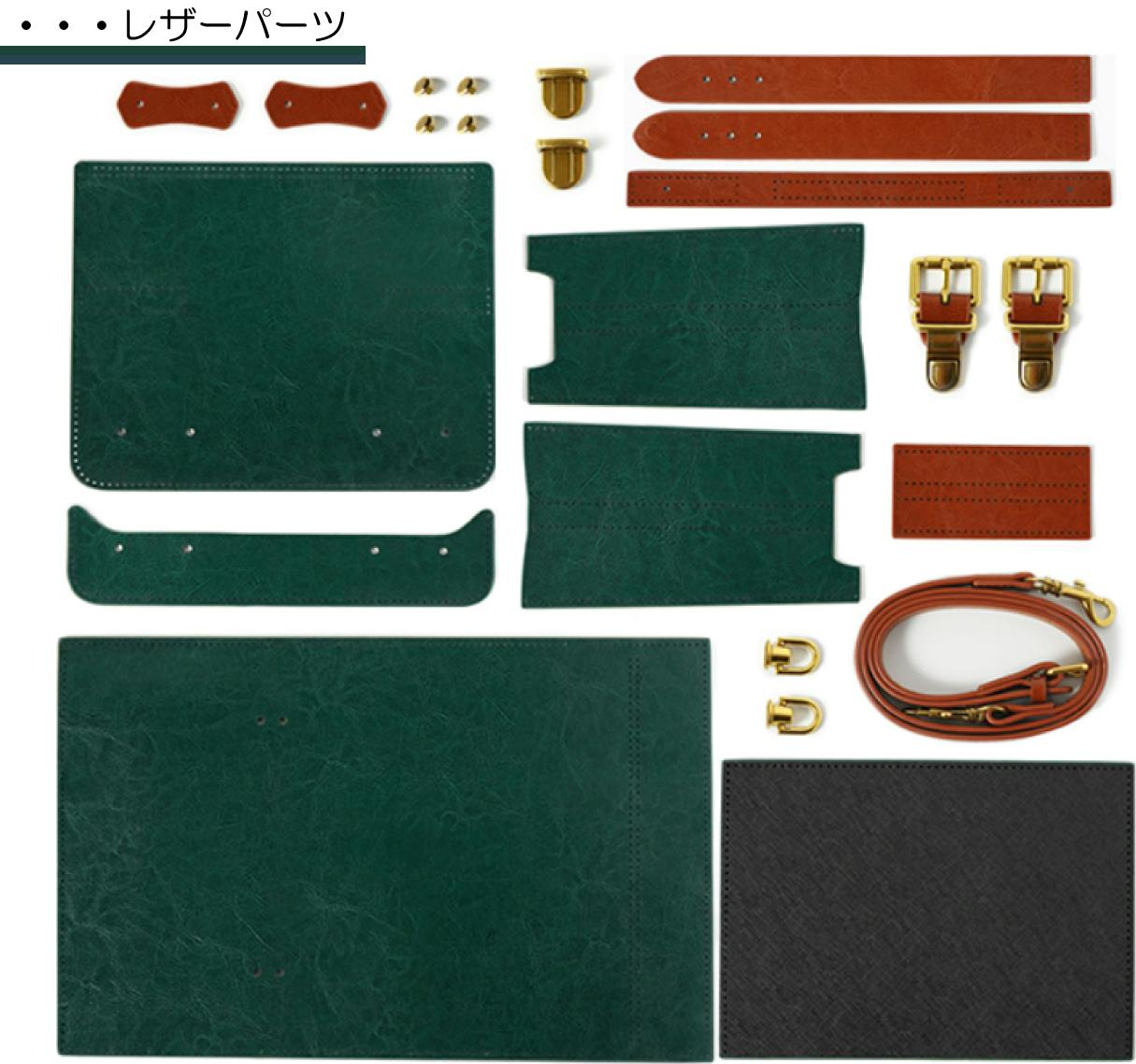 バッグの本体パーツ、付属パーツ、針、糸を付属しておりご自身の手でパーツを縫い合わせて完成させて頂く組み立てキットです。
