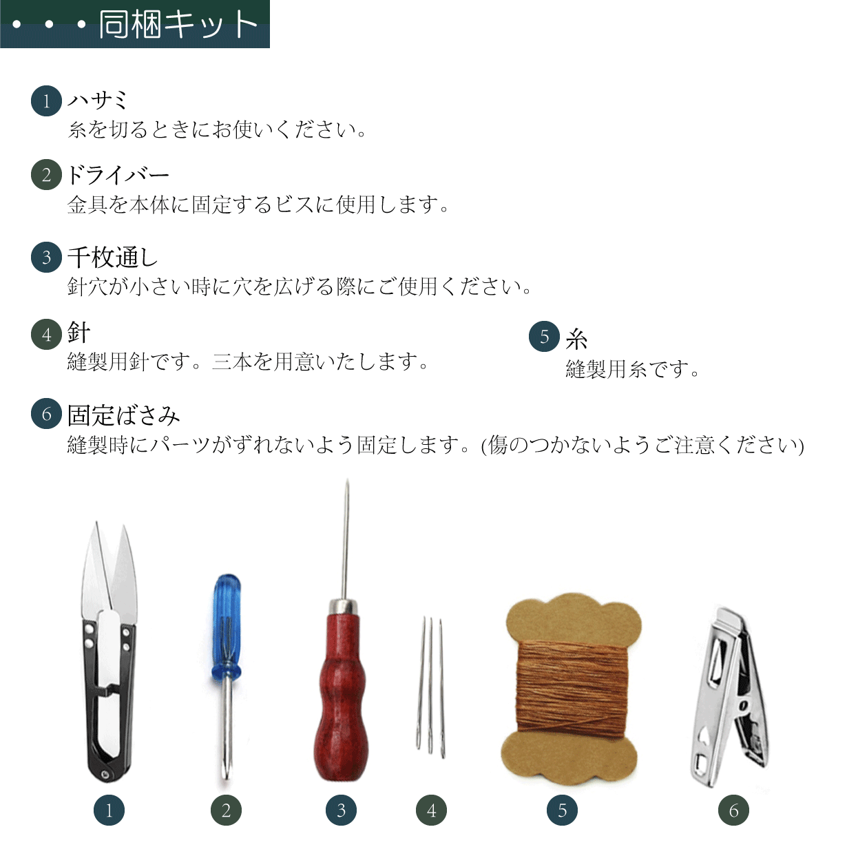 (縫製用キットですので針先、ハサミ、千枚通し、ドライバーなど鋭利な道具が多いのでお取り扱いには十分ご注意ください。)