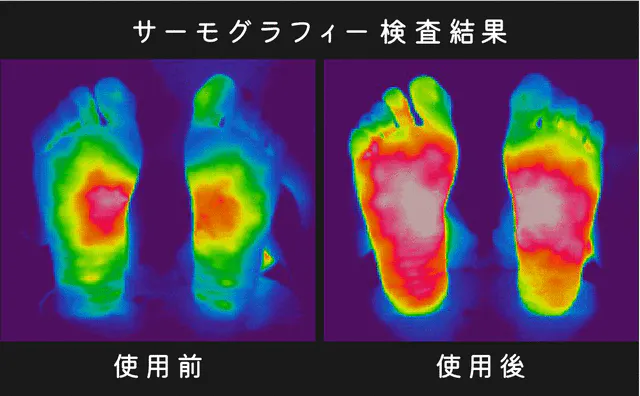 ↑ポカドッツ使用前使用後のサーモグラフィーの結果です。↑