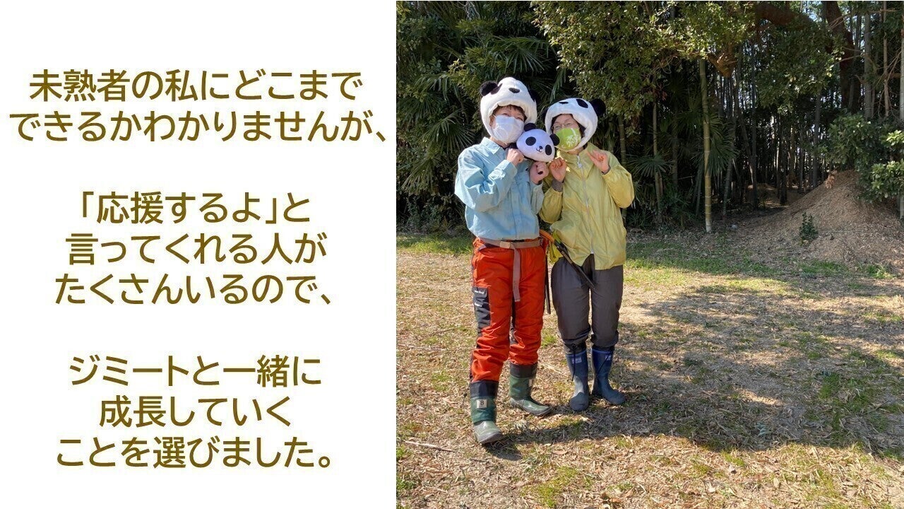 未熟者の私にどこまでできるかわかりませんが、「応援するよ」と言ってくれる人がたくさんいるので、ジミートと一緒に成長していくことを選びました。