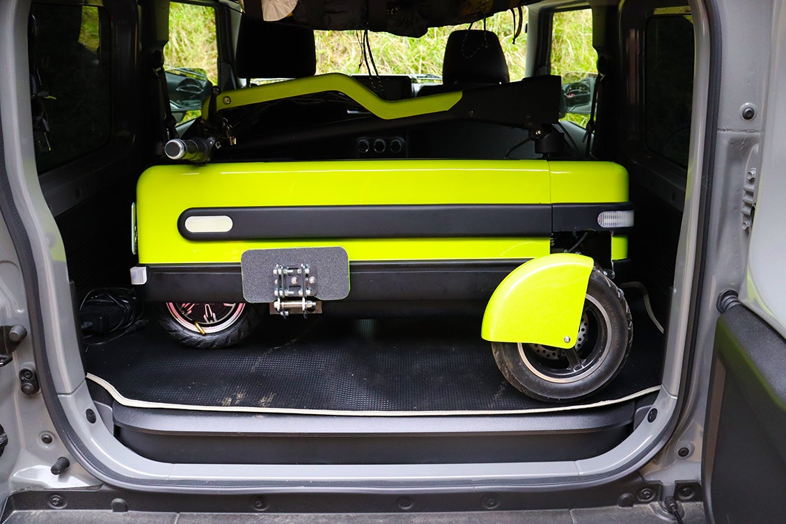 車両が箱型なので、中にちょっとした荷物や予備バッテリー(別売り)を入れるスペースを確保できました。雨などの天候の変化で大事な荷物が濡れたりしません。好きなことに没頭する生活をより便利に楽しくするため、機能性を重視しました。