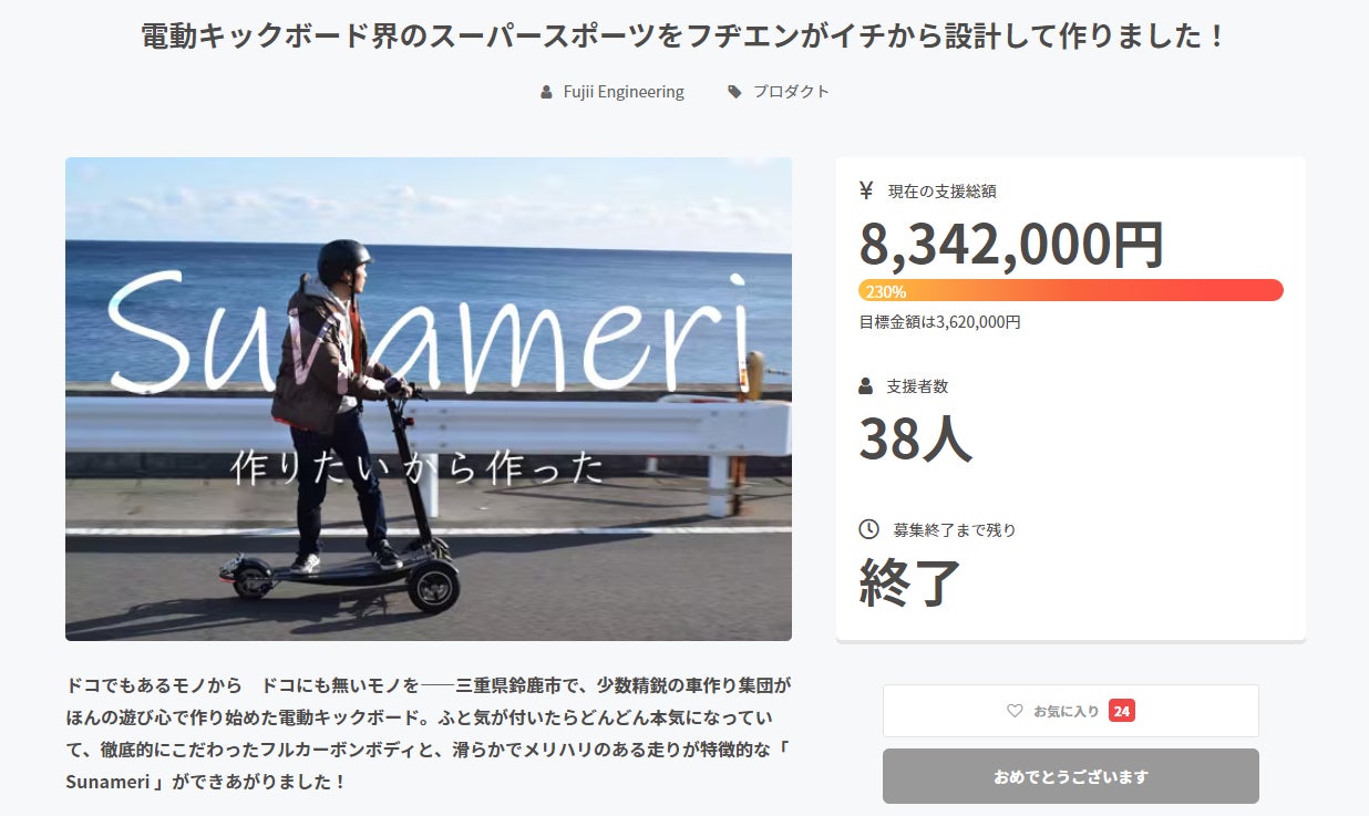 Sunameriの試作車で遊んでいたら、是非この面白さ・楽しさを他の方にも共有したいと思うようになり、クラウドファンディングに挑戦することにしました。
