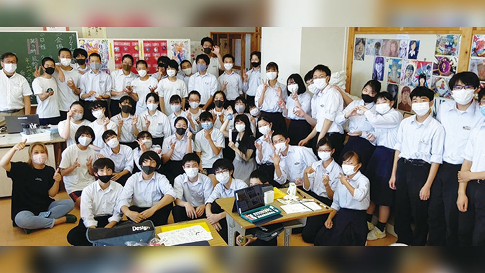 飯島中学校全校生徒への風鈴支援で訪問した際の1枚そして今年度より、りんりん祭の実行委員として仲間入り。