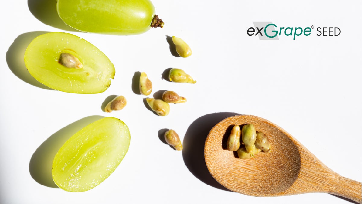 「exGrape SEED(エックスグレープシード)」 はカテキンやビタミンC、ピクノジェノール等よりも高いORAC値を誇るポリフェノール含量が豊富なシャンパーニュ地方の白ブドウ種子エキス。プロアントシアニジン40%濃度で規格化した先端リカバリー素材です。