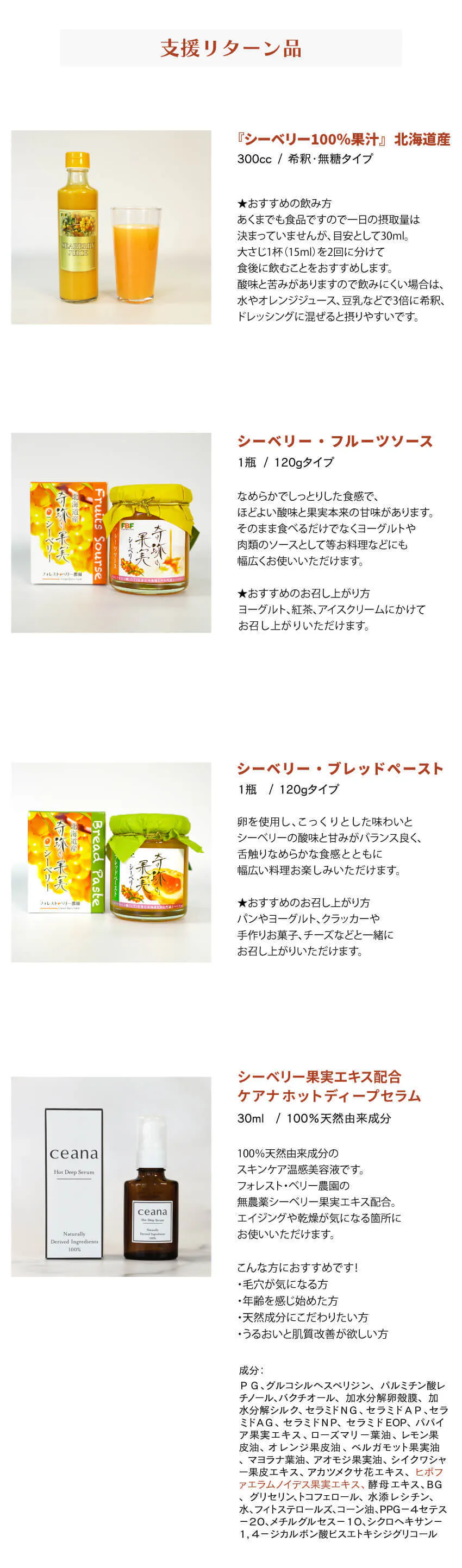 原材料/シーベリー 原産地/北海道