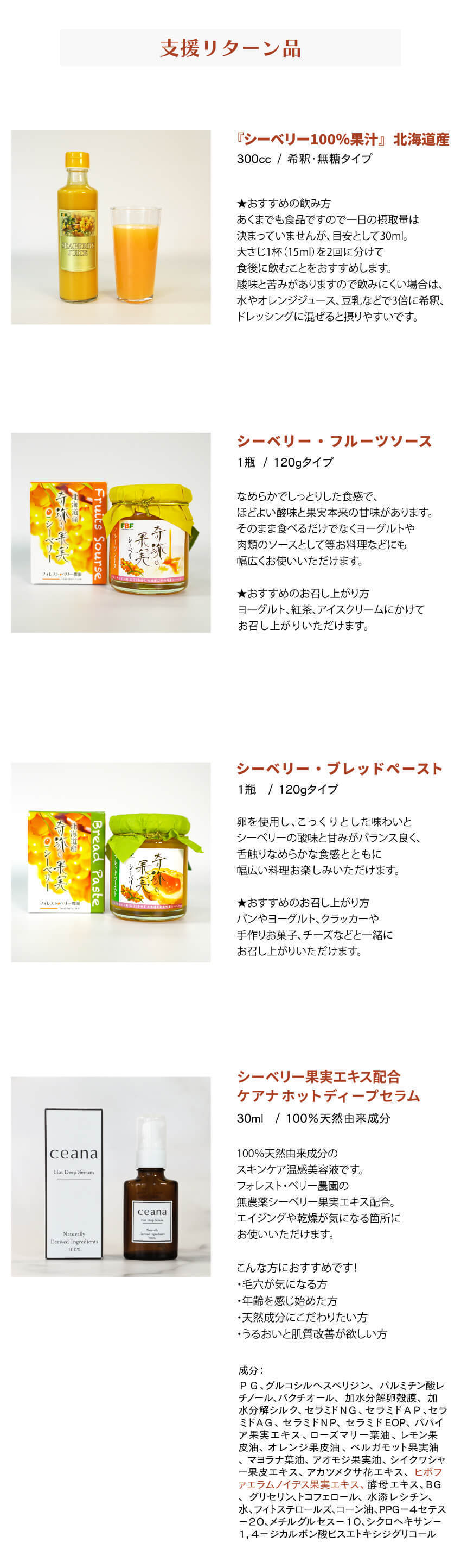 ・シーベリー食品に関しましては発送はフォレスト・ベリー農園(株式会社遠藤組)より行います。