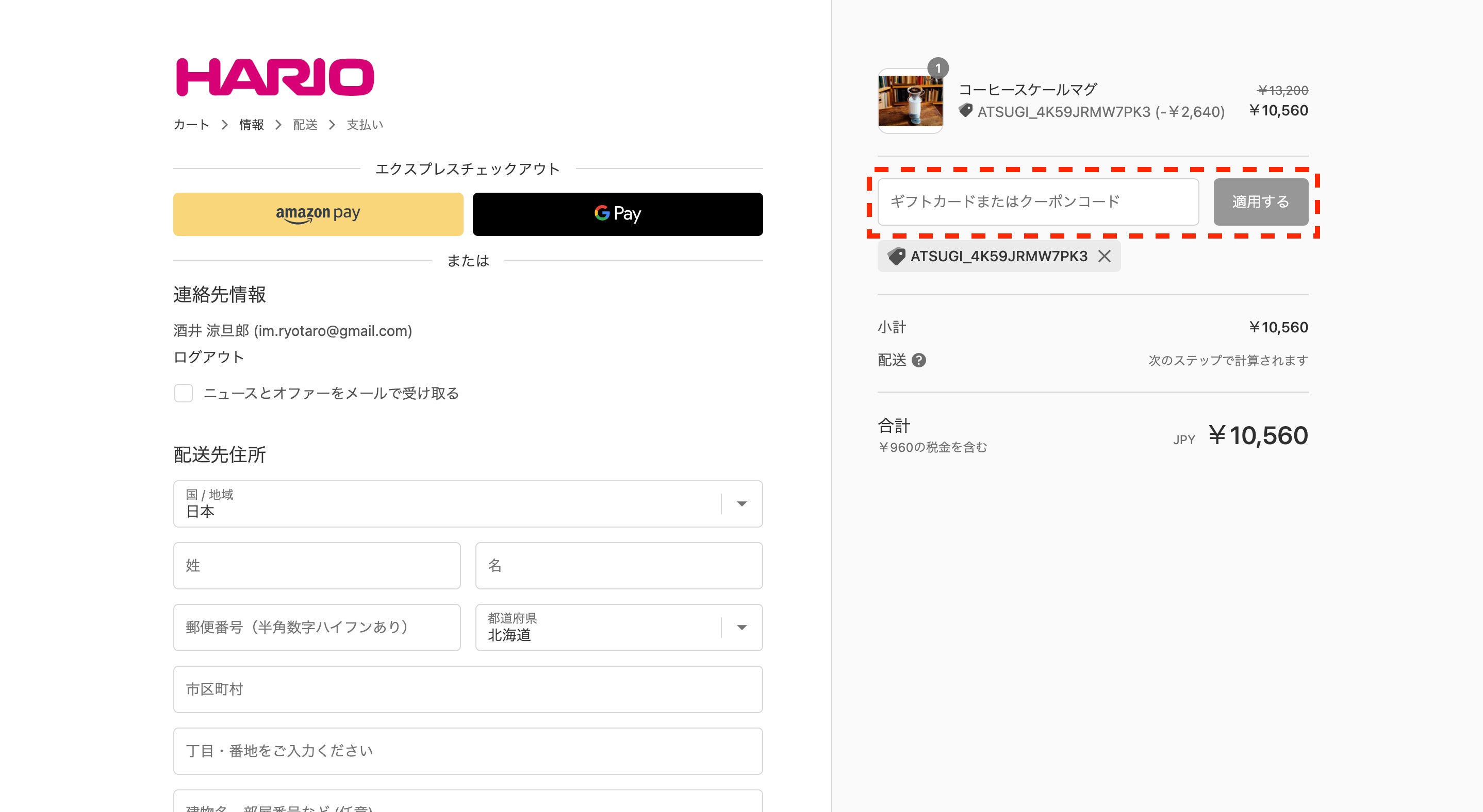 クーポンコードは『ATSUGI_4K59JRMW7PK3』
