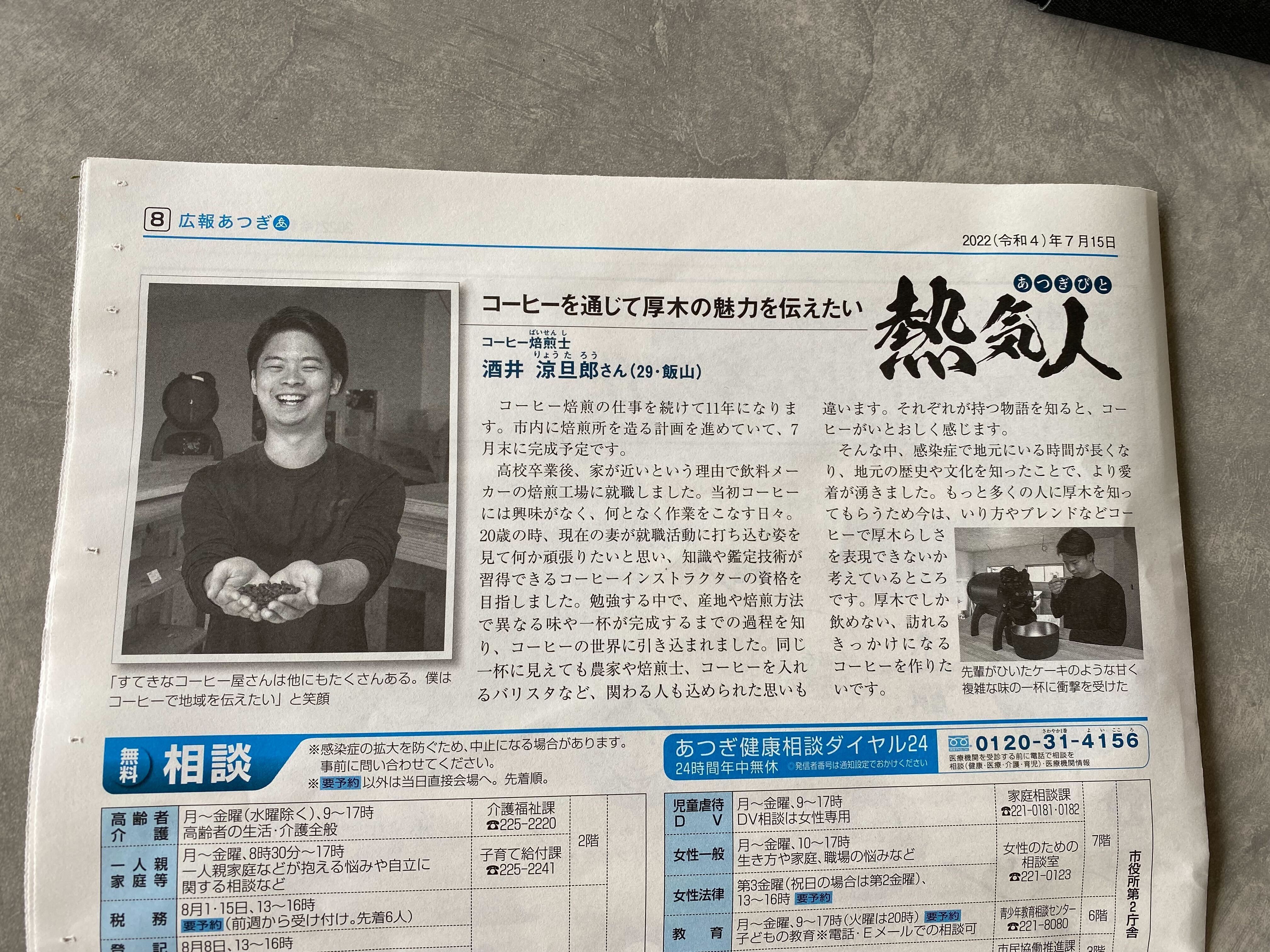 厚木市が発行する広報誌「広報あつぎ」の熱気人(あつぎびと)に取り上げて頂きました!22万人が暮らす街で取り上げていただくのは嬉しすぎる、、、WEB版もあるそうなのでチェックしてみて下さい〜!!http://sv_pc.ecocat-cloud.com/lib/ecolab/export/ec864d4a_1319d021/book.html?bid=2816&startpage=1&url=http://sv_pc.ecocat-cloud.com/&key=c8ca134349b116674bd6af7e712b60db&callback=afterComp