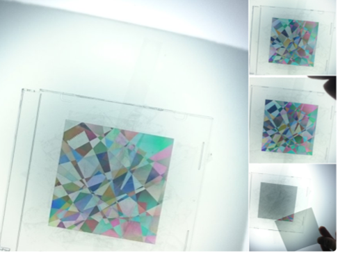 そんな中、光学について勉強していると、様々な面白い現象をつくりだせることに気づきました。世の中では物理は難しいものとして敬遠されている傾向にあると思います。もっと身近に感じてほしいと思うのです。(下は「偏光」と「複屈折」という知識を使った現象)