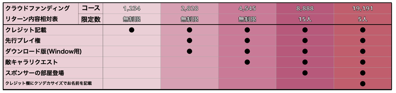 リターンについては以下の5種類をご用意しております。