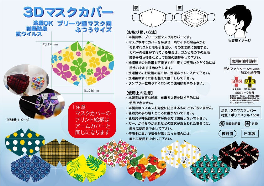 リターンB~リターンDのご支援をいただいた方には提供するアームカバーに加えて下記のマスクカバーを贈らせていただきます。こちらのマスクカバーはお礼を兼ねてお贈りさせていただくものです。