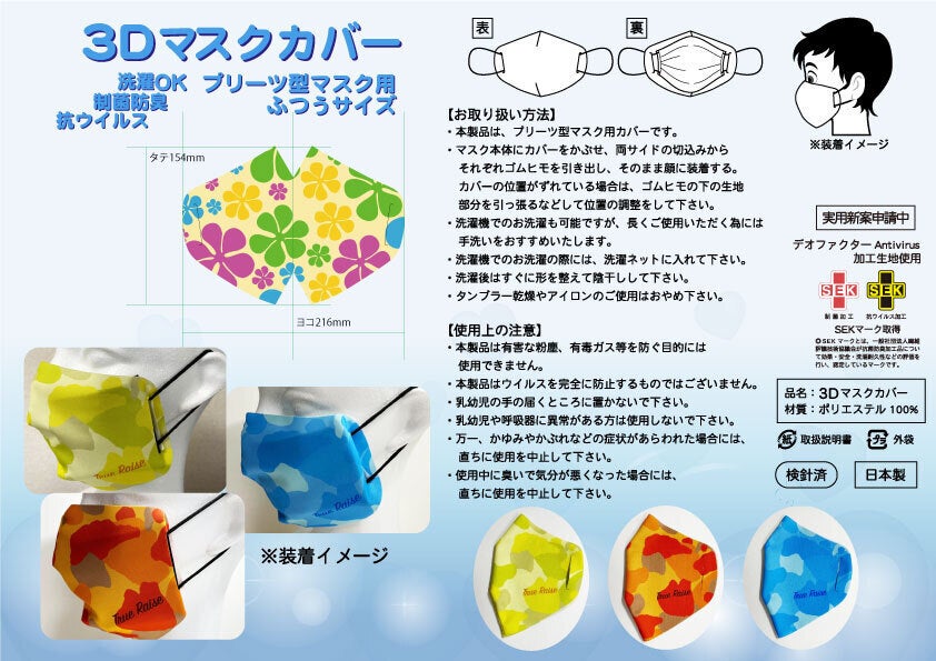 使い方:不織布のマスクの上にお付けいただきますが、耳部分がカットされているので不織布の耳紐を通すだけなので取りつけも簡単かつ、耳への負担がありません。