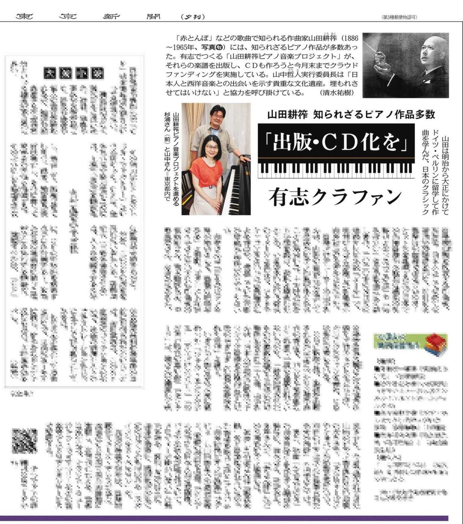 2022/08/04 16:08「山田耕筰ピアノ音楽プロジェクト」が、本日(8月4日)の東京新聞夕刊に記事掲載されました。本プロジェクトの歴史的意義、芸術的価値が余すところなく紹介されています。首都圏にお住まいのかたは、駅の売店やコンビニなどで是非ご購入ください! もっと見る