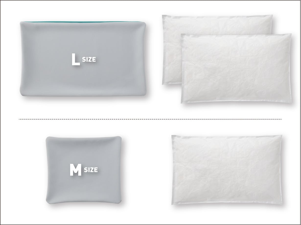 Lサイズはインナーを2つ、Mサイズはインナーを1つ折りたたんで、使用します。