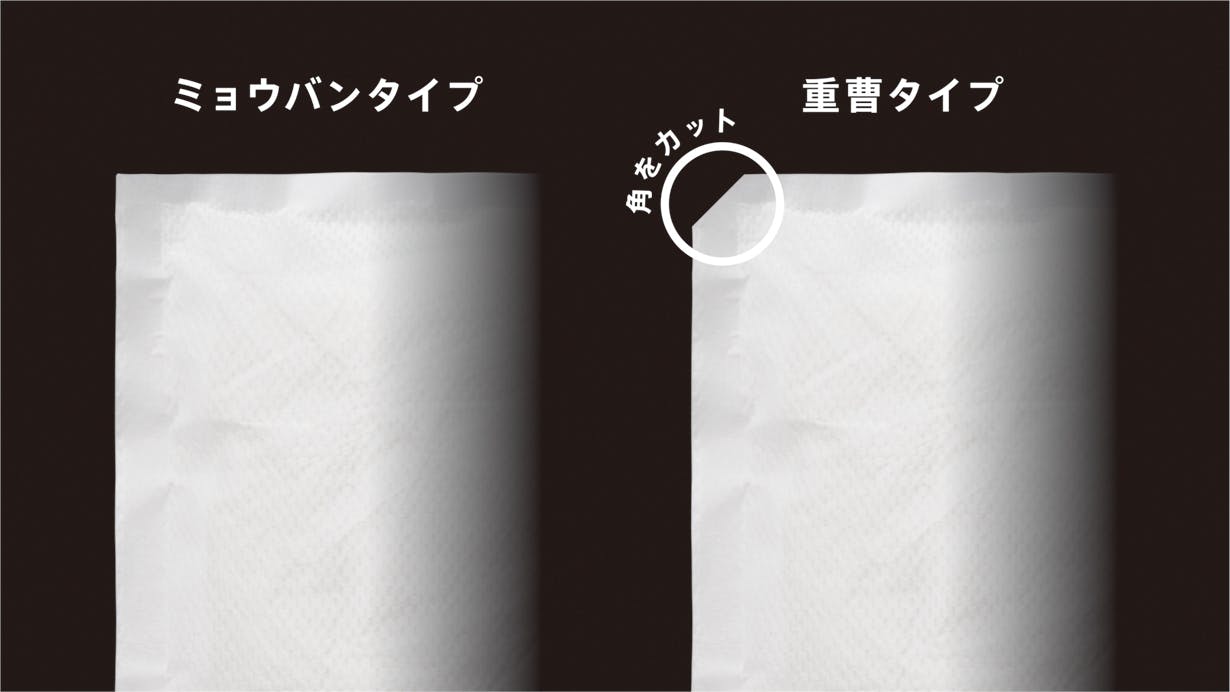 インナーは「ミョウバンタイプ」「重曹タイプ」の2種類です。簡単に見分けられるよう、重曹タイプのみ角をカットしています。