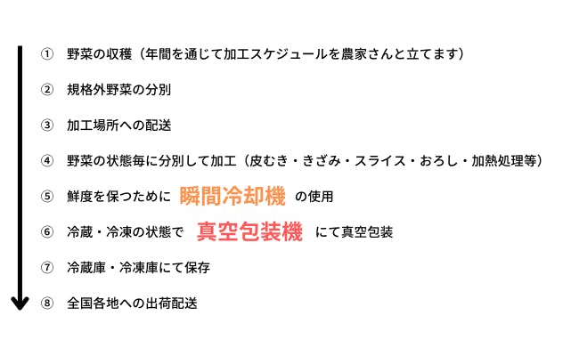 廃棄野菜を0にする為に以下の手順で行いたいと考えております。