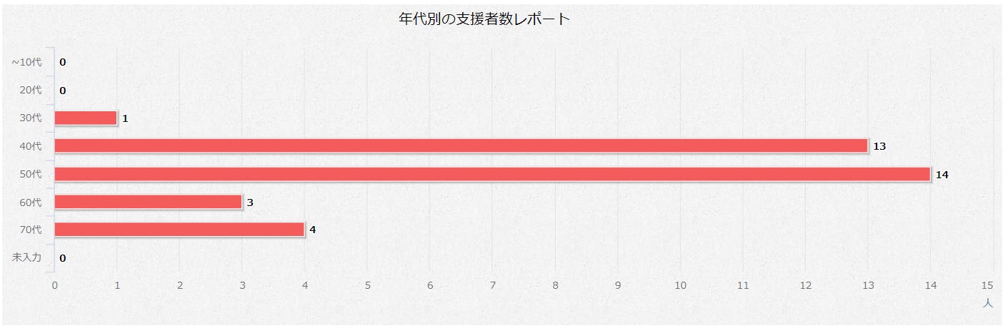 ご支援いただいている方々の年代が40代50代がグンを抜いて高くなっています。とてもとても嬉しいです!!!