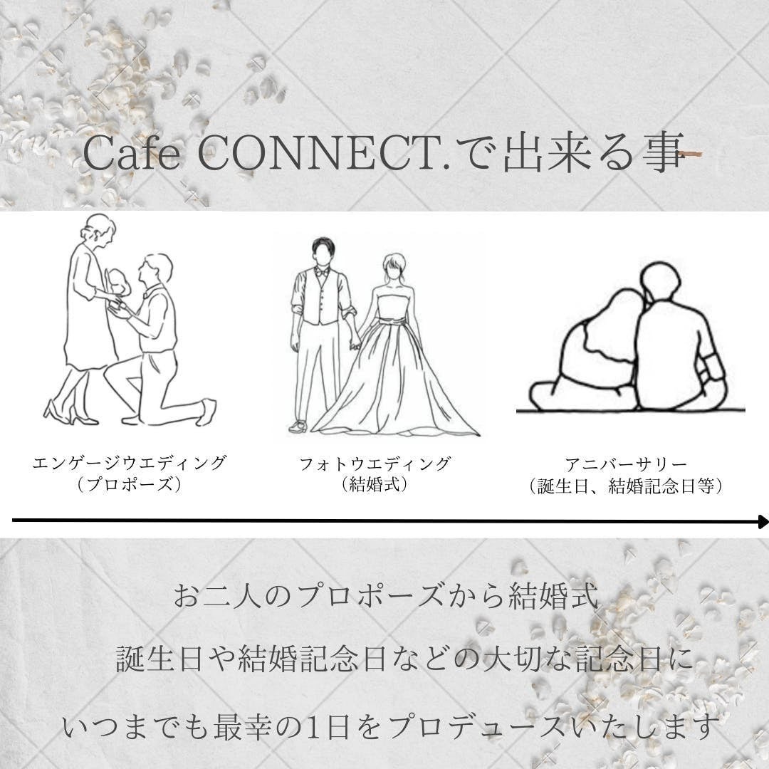 そして、ここcafe CONNECT.で繋がった縁を大切に。出会いからプロポーズ、結婚式そしてアニバーサリーとずっと続いていく縁を私達は大切に育んで行きたいと思います。