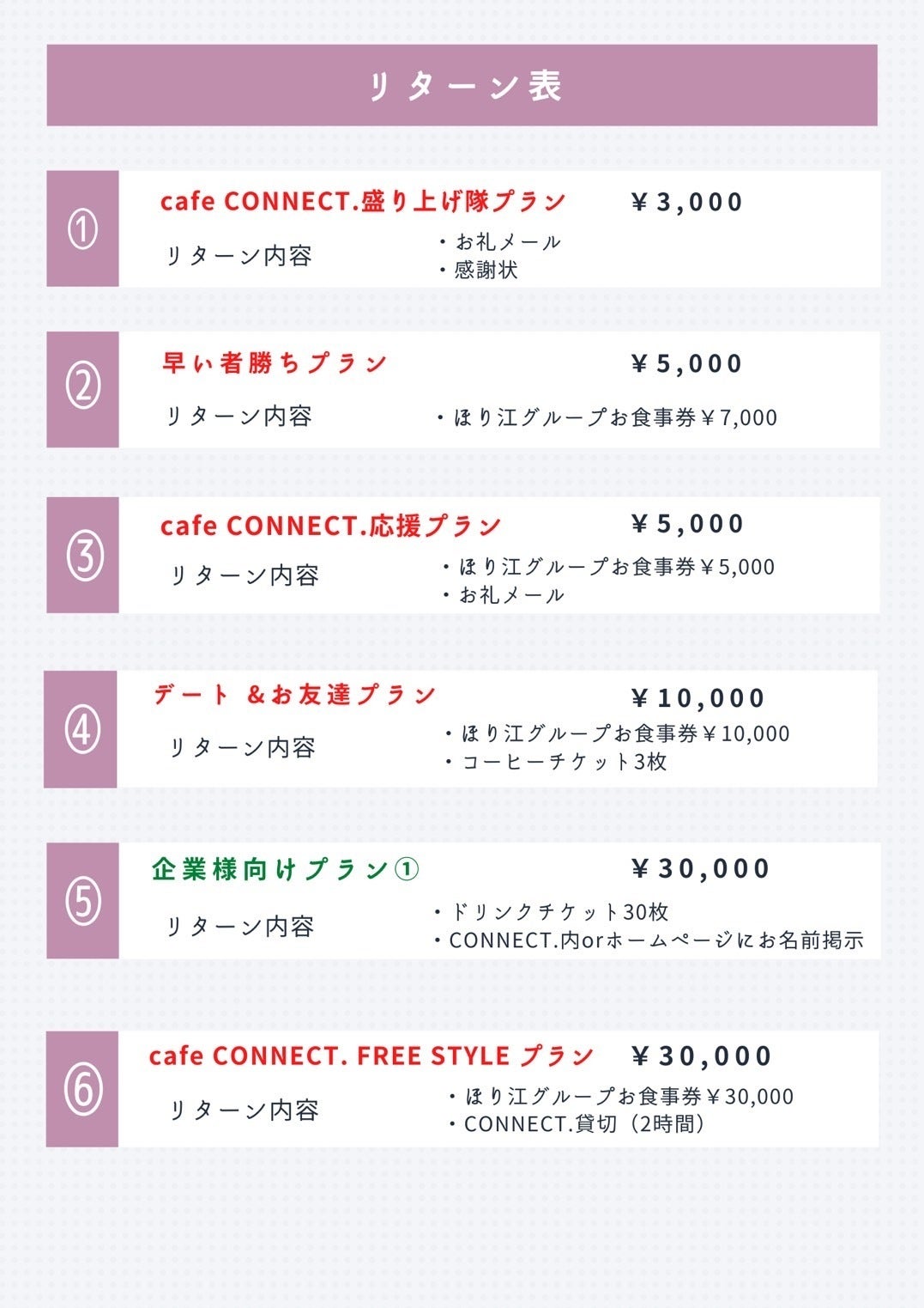 ご支援頂いた金額はインスタ映えするスポットを作成するため、cafe CONNECT.の建設費の一部として大切に使わせていただきます。