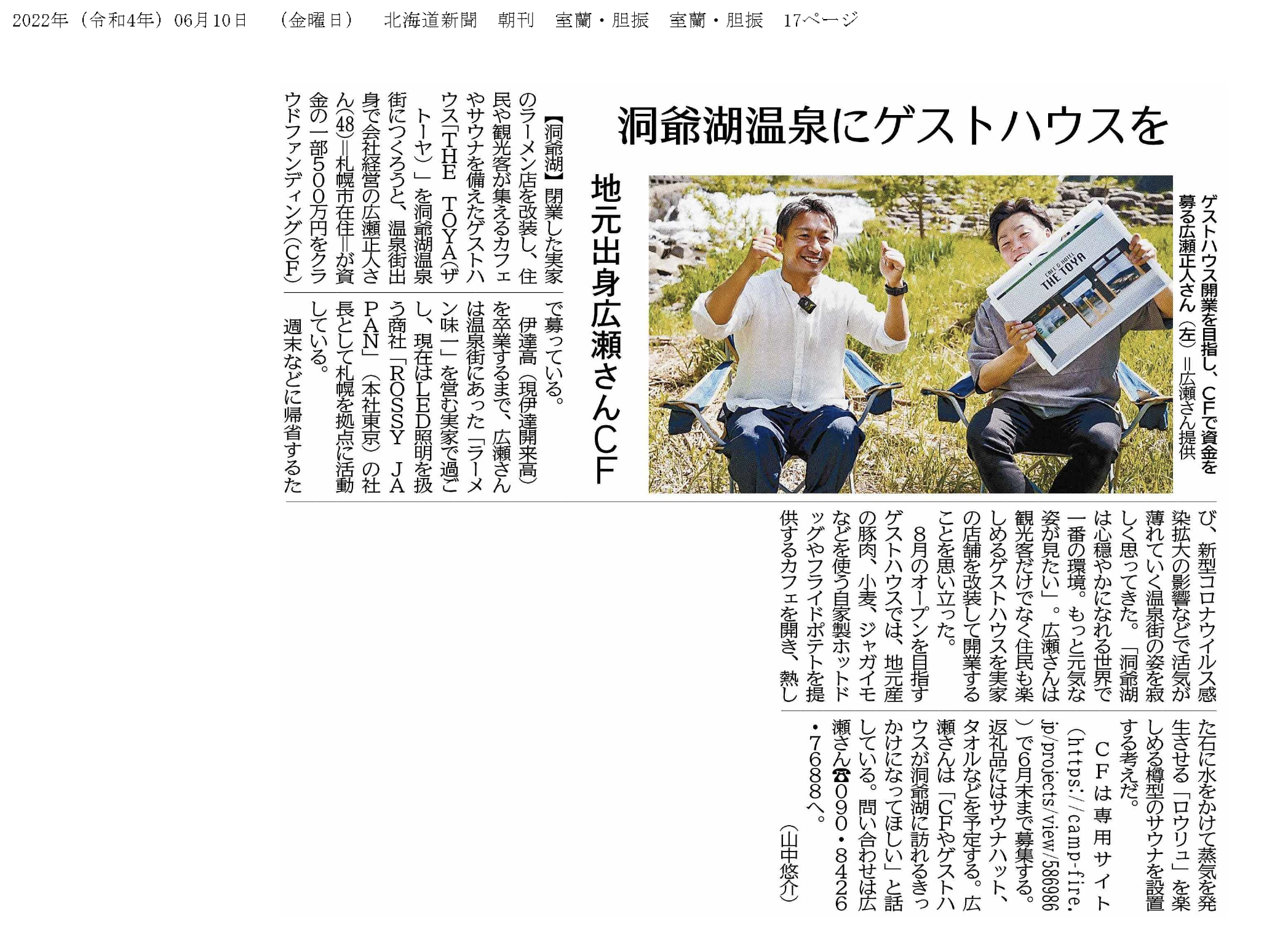 私が生まれ育った洞爺湖に訪れてくれる旅行客の皆様に観光地だけではなく、洞爺湖の地域性に触れてより深い思い出を作れる場所を目指しサウナも楽しめるゲストハウスを、2022年7月にオープンを目指して活動しています!