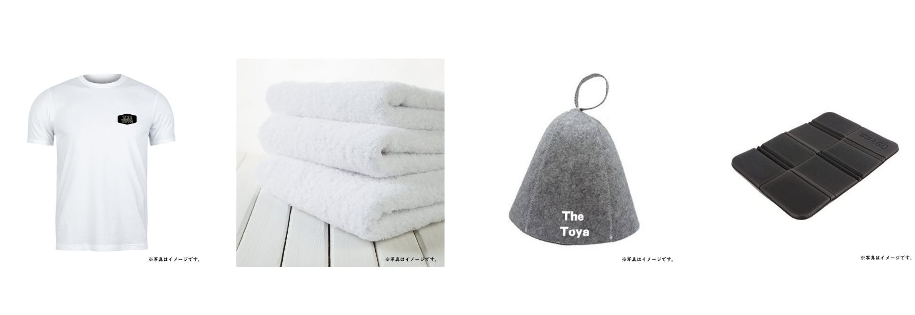 オーナーよりお礼メール& オリジナルグッズ4点(バスタオル、Tシャツ、サウナハット、サウナマット)&館内 15,000円分チケット(宿泊、 飲食、サウナ、2024年8月まで有効 釣銭なし)