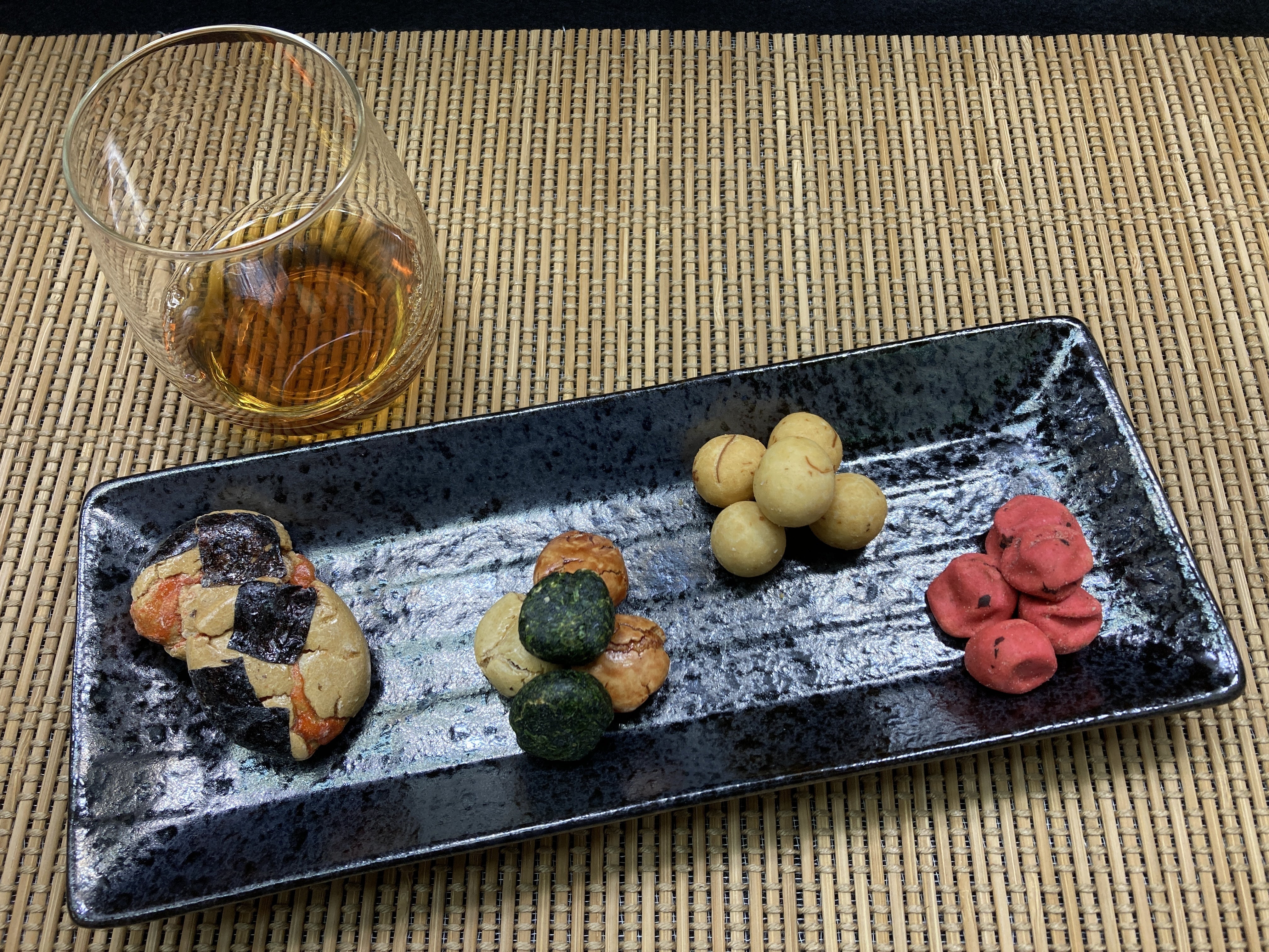 左から、えび落花、磯小判、いか豆、梅干豆お父さんのおつまみにも如何でしょうか?