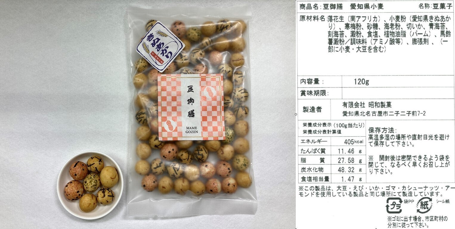 今回出品にあたり新しい製品として、更なるおいしさを求め、主となる小麦粉を愛知県産小麦 品種名(きぬあかり)と岐阜県産小麦粉を使用し製造致しました。