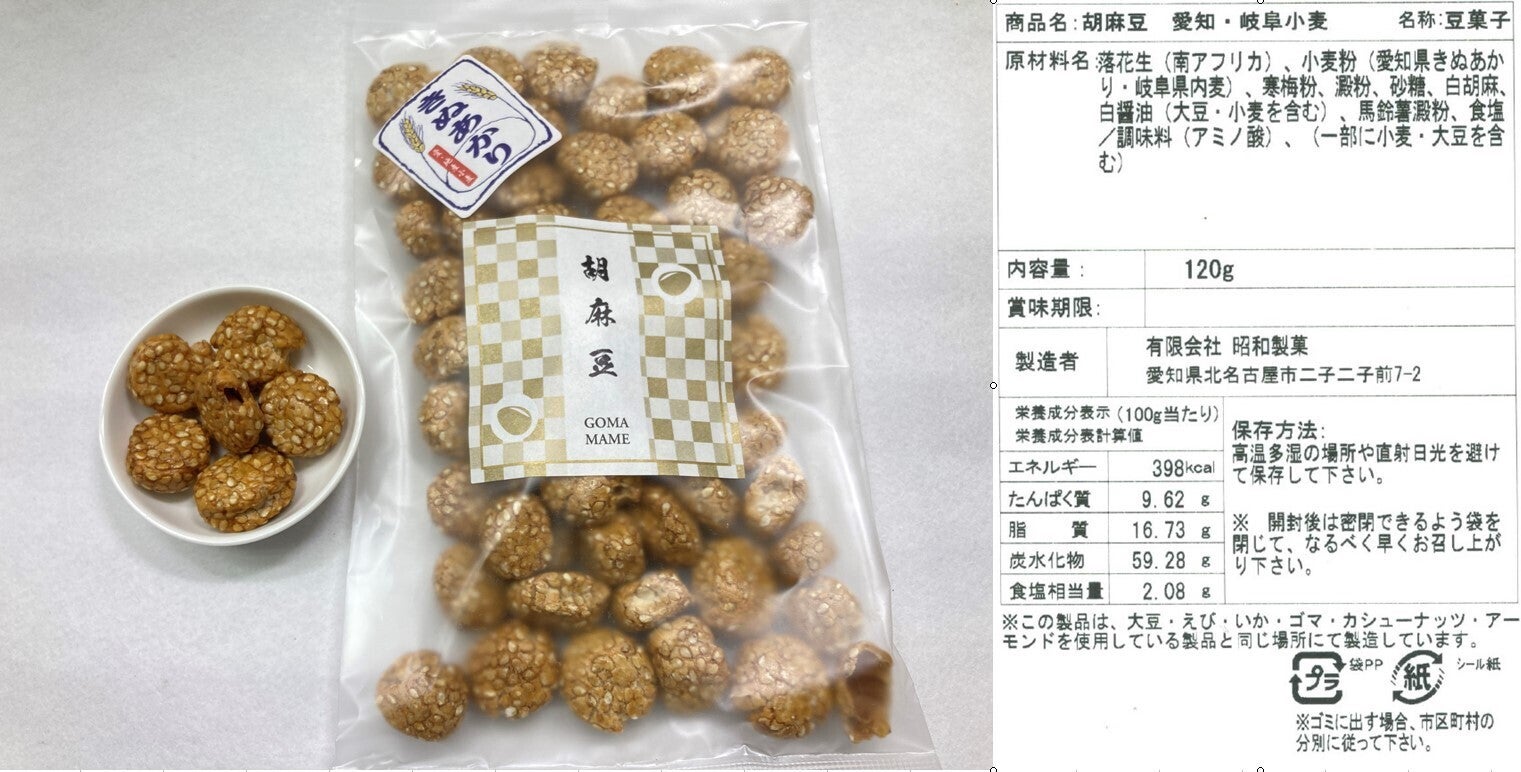 落花生・小麦・えび・カシューナッツ・ごまを含む商品です。