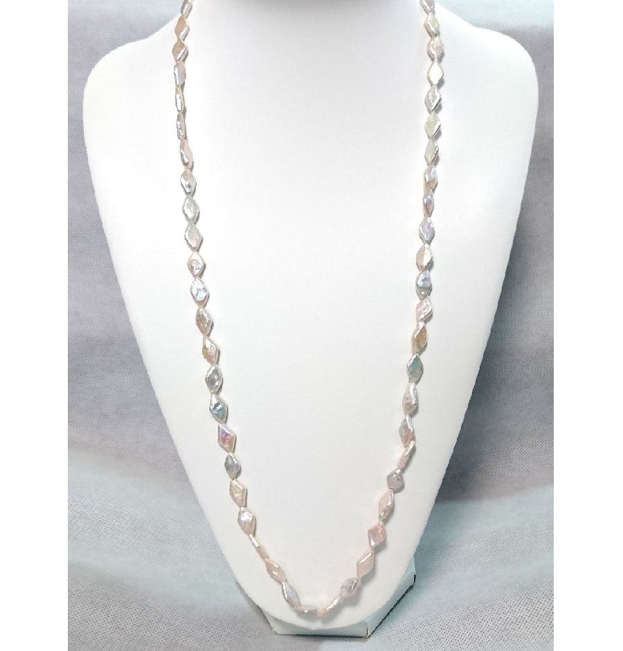 稀少 照りの綺麗な菱型パールロングネックレス8X15mm
