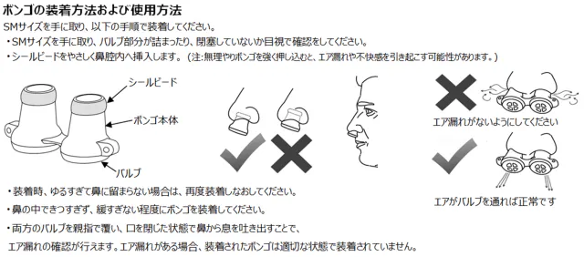 シリコンでできた柔らかいボンゴを、鼻に軽く装着するだけ!