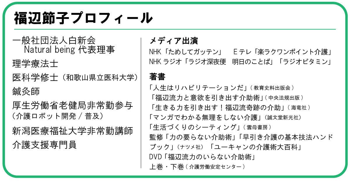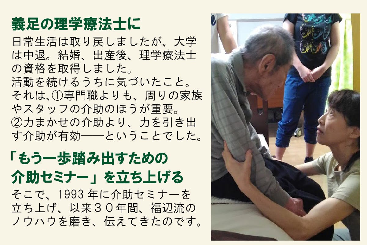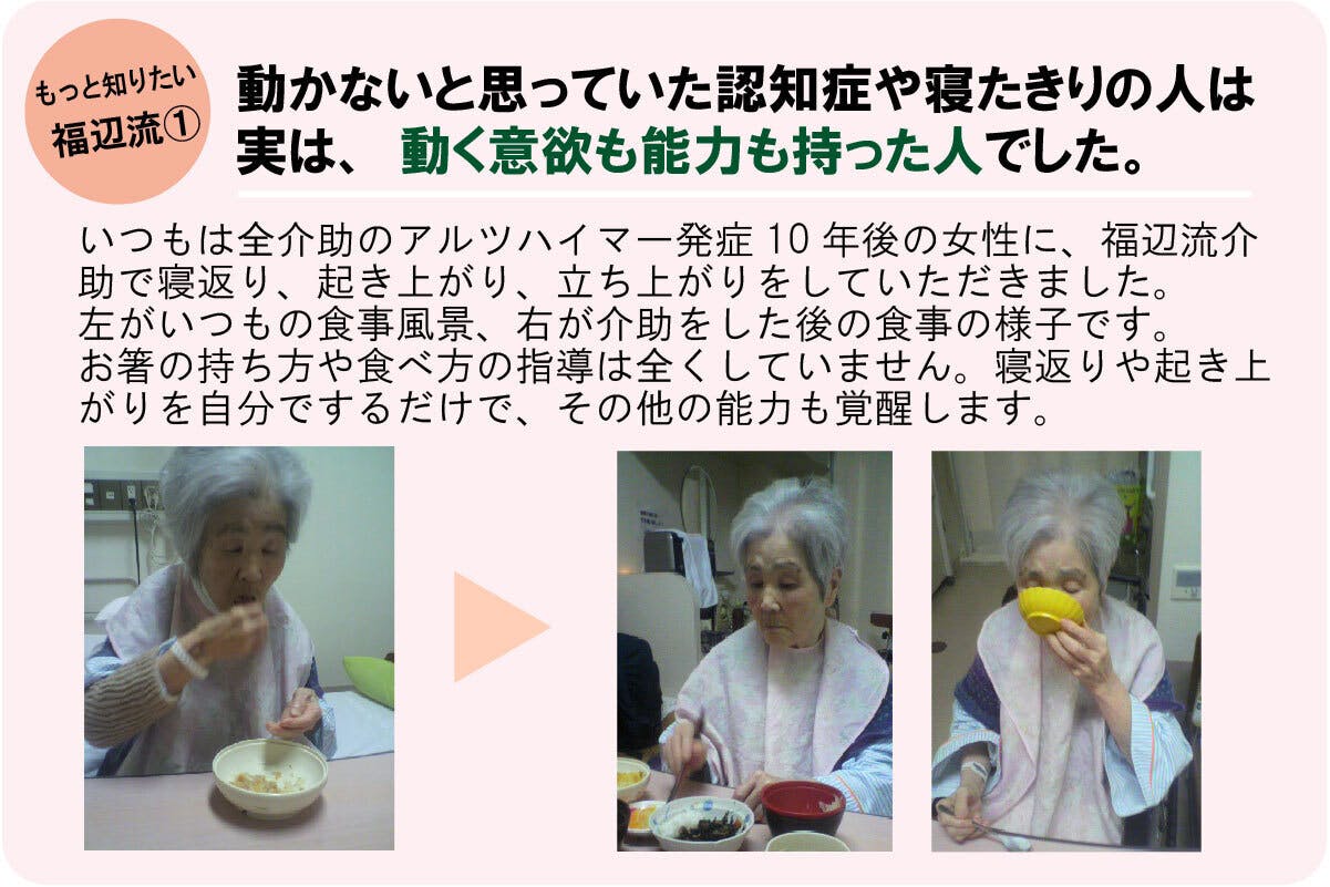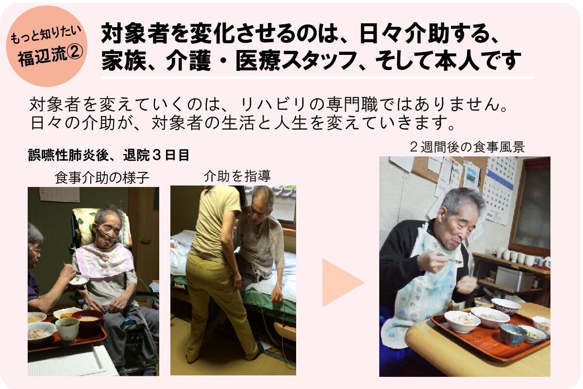 介護状態からの復活を支える福辺流〝力と意欲を引き出す介助術〟の位置付けが欠かせません。