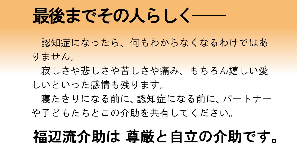 福辺流介護を拡げて 日本の介護をもっと良くして下さい。応援しています。