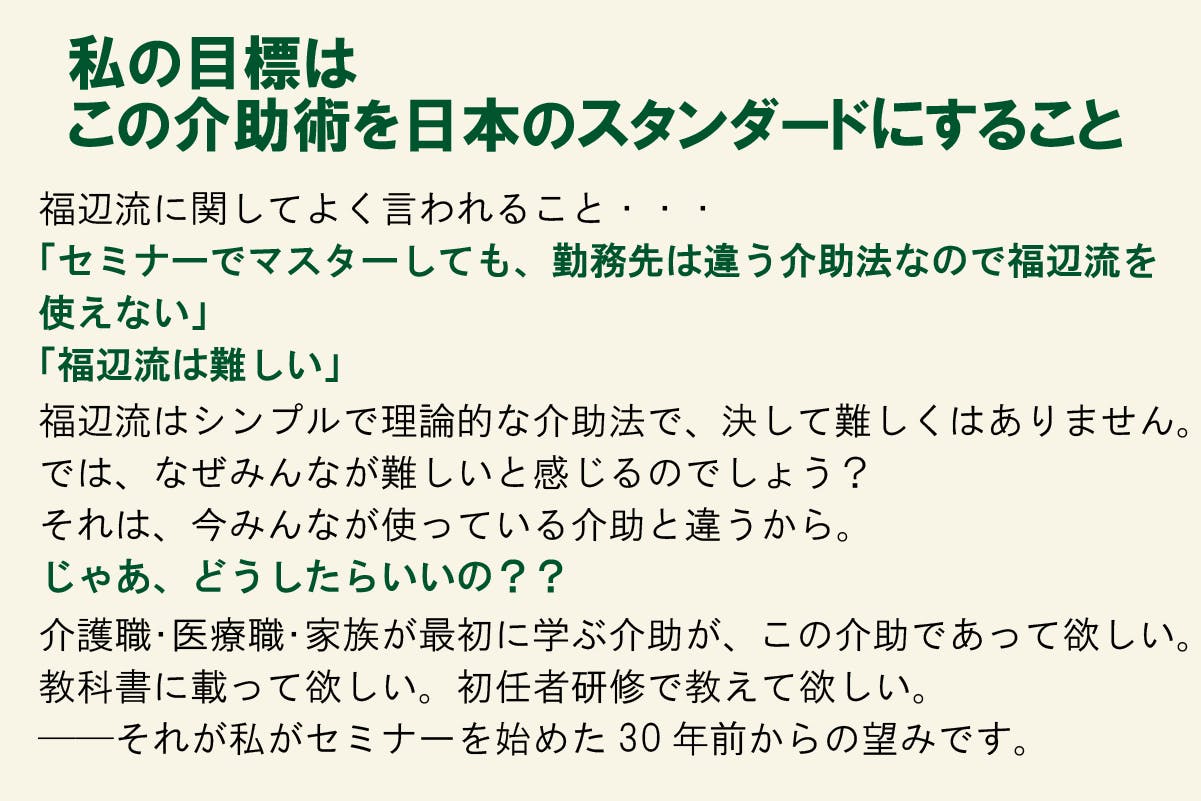 福辺流が介助のスタンダードになることを強く願っております。