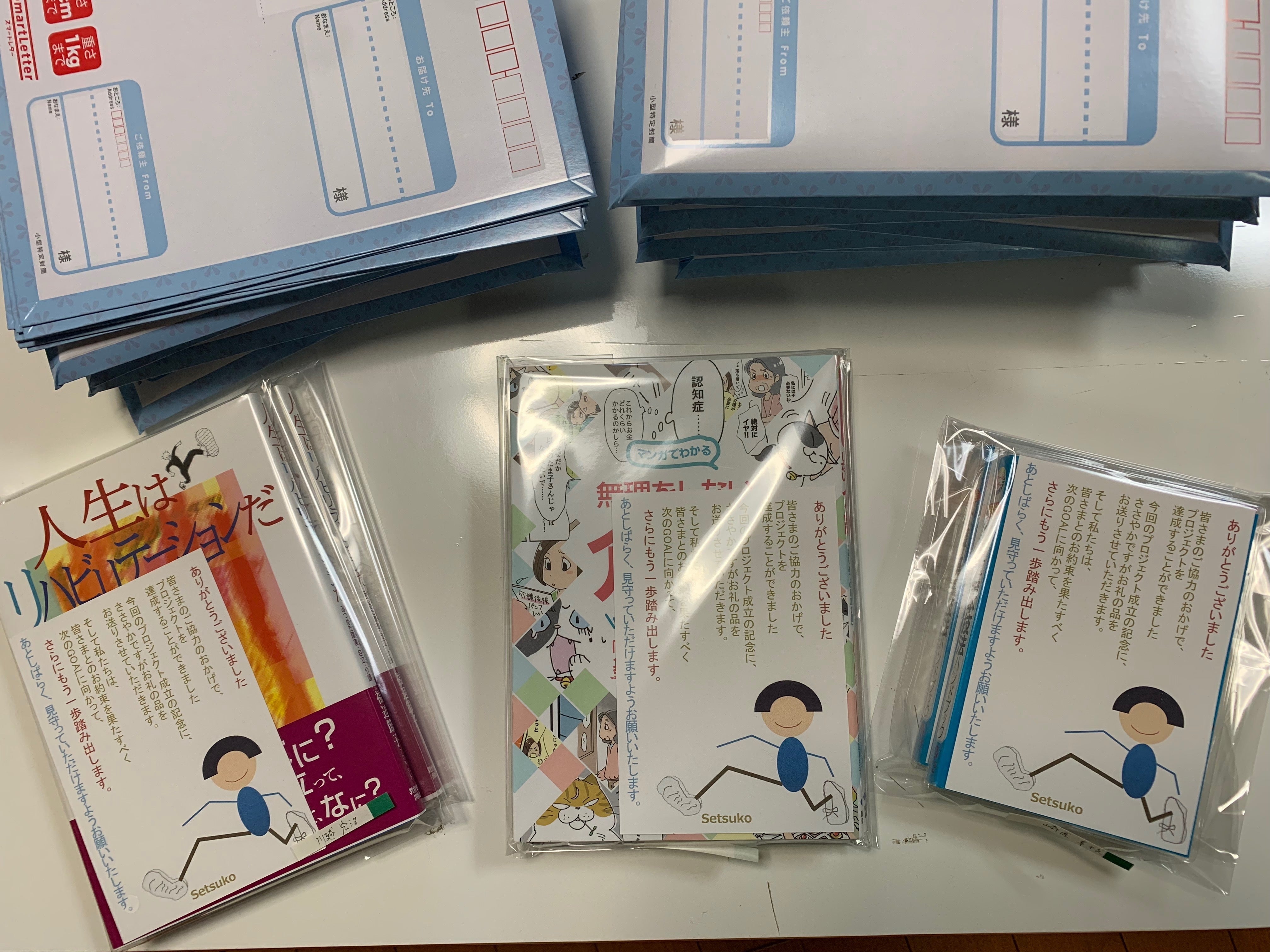 リターンに選んでいただいた書籍やTシャツを発送中です。すでに届いている方、まだの方、順次届くと思いますのでお待ちください。