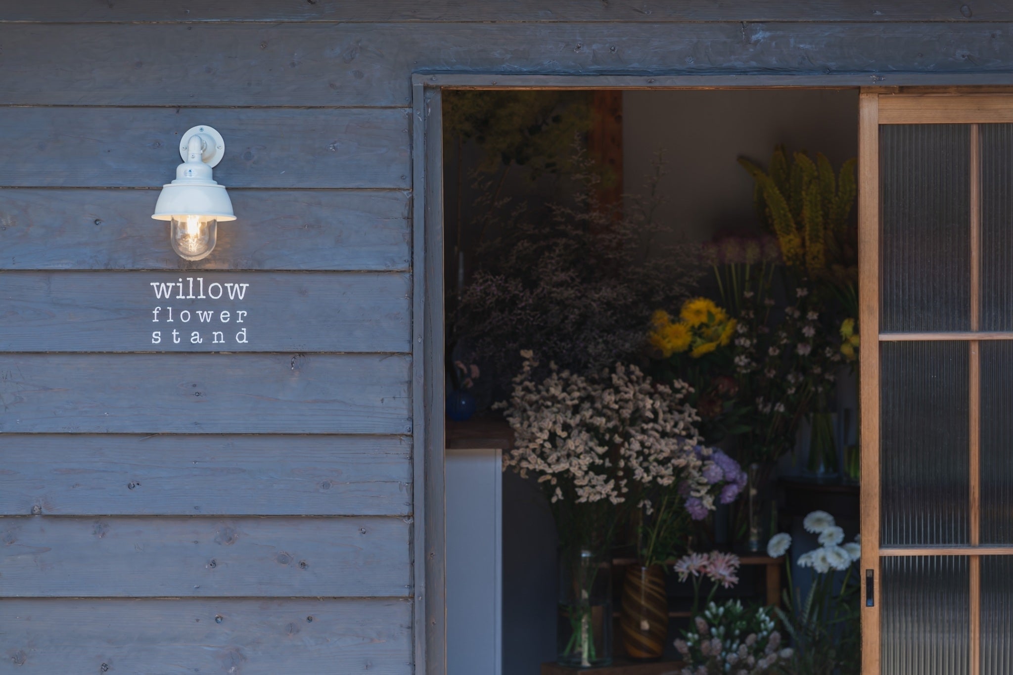 日用雑貨店の入り口はウッドデッキになっており、そこにある小さな小屋には鎌倉材木座にあるアトリエ「willow flower works 」さんが入ります。お花や植物たちが日常生活に彩りを加え、暮らしを豊かにするお手伝いをします。