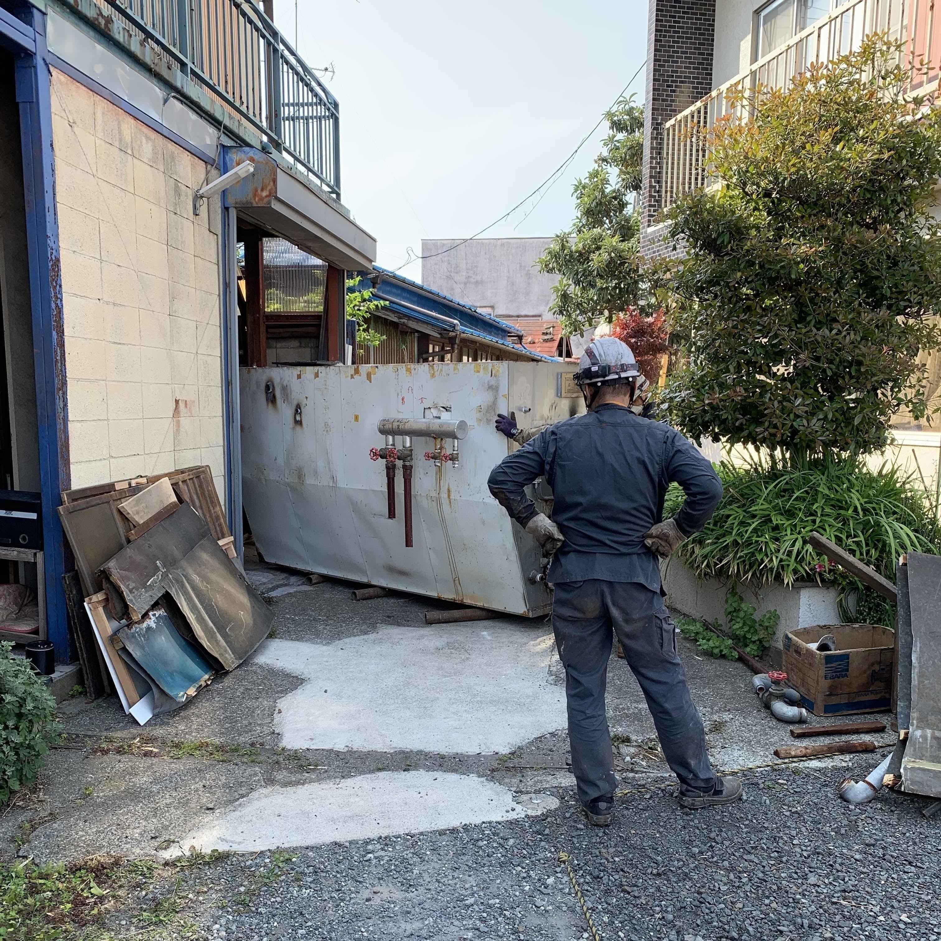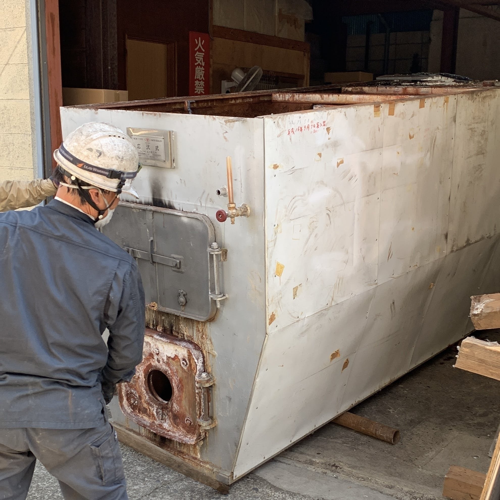 じいちゃんの釜(古い釜)は搬出され、新しい釜が搬入されました。