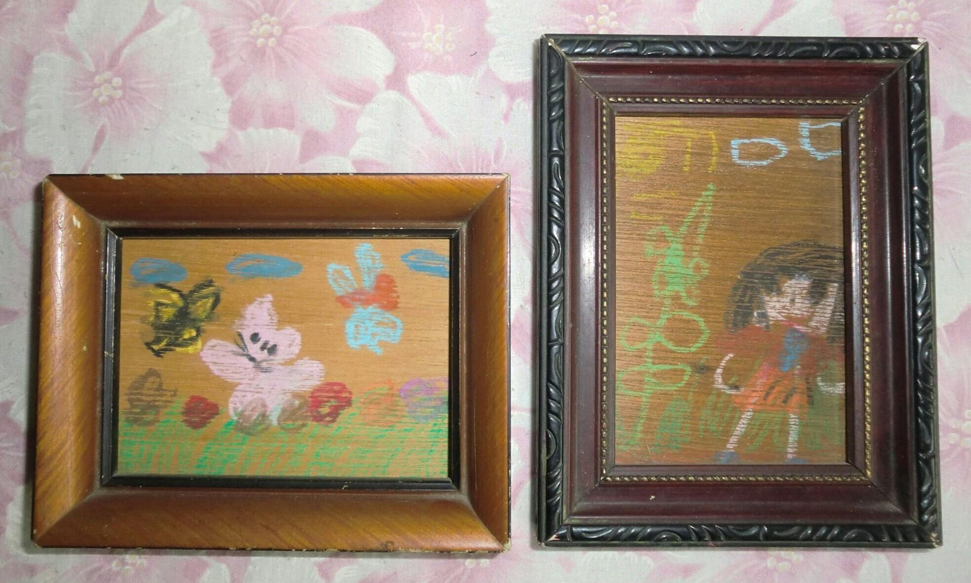 何歳の頃か憶えていなくて、母の写真立ての板の部分にクレヨンで落描きしたらしいですが、大人になってから額入りの絵を描く仕事をすることを予知していたかのようですね!?