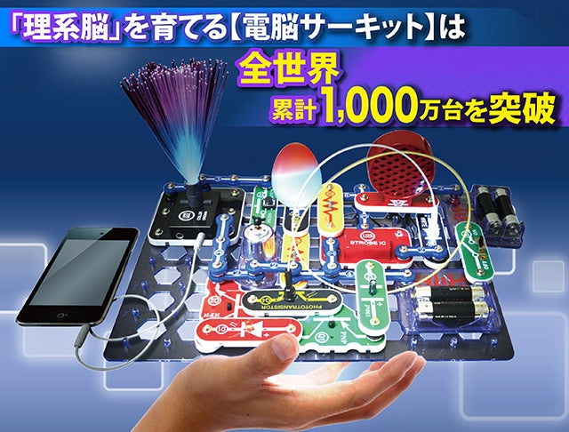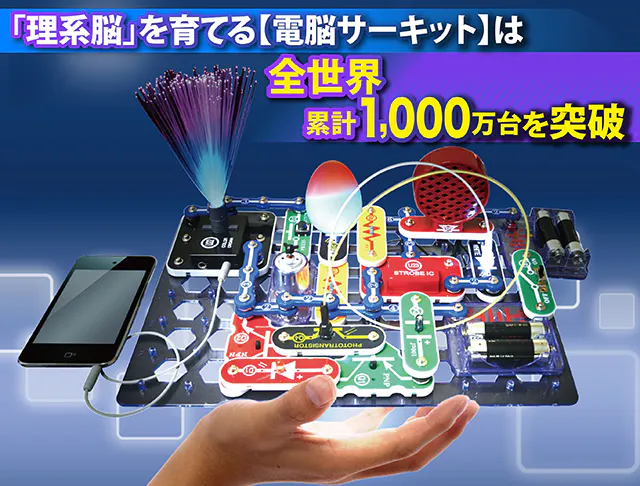 代表作には、全世界累計販売数1000万台を突破し、現在第11弾が好評発売中の【電脳サーキット】 シリーズがあります。 【電脳サーキット】は、ブロック遊びのように組み立てるだけで、多数の電子回路の実験ができます。