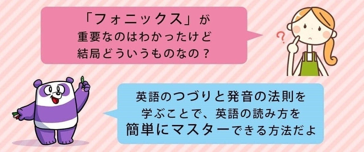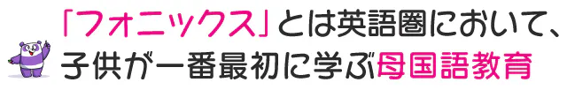 「フォニックス Phonics」は、英語圏の子供たちが母国語を覚える際、一番最初に学ばれる幼児教育教材であり、英語の「発音ルール」を学ぶ音声学習法です。