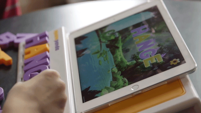はい。お子様がアルファベットブロックを置くと、アプリ上で認識され、それぞれのコンテンツの内容に反映します。