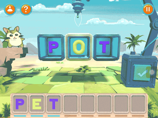 アプリに従ってキャラクターたちと一緒に声を出したり、アルファベットブロックを置いていきましょう。