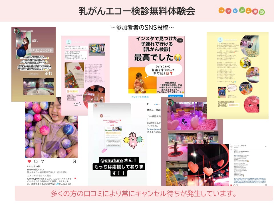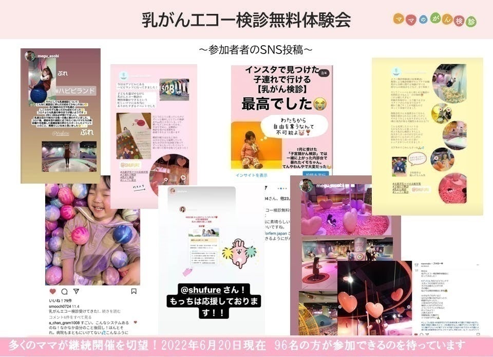 そこで急遽検診を受けたいのに受けられていない方々だけでも参加してもらおうと企業協賛を募りつづけ2022年6月現在で14回364名の方にご体験いただくことができましたが、ママたちの口コミにより参加待ちの方は増え続けている状況です。