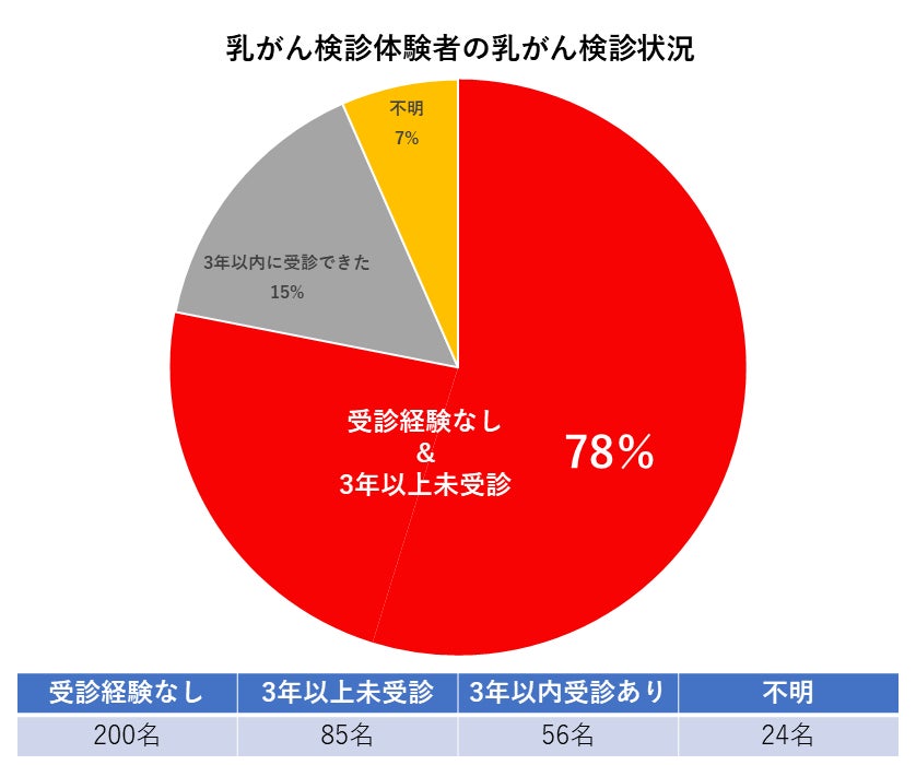 ■約8割のママが乳がん検診「受けたことがない」「出産後3年以上受診できていない」