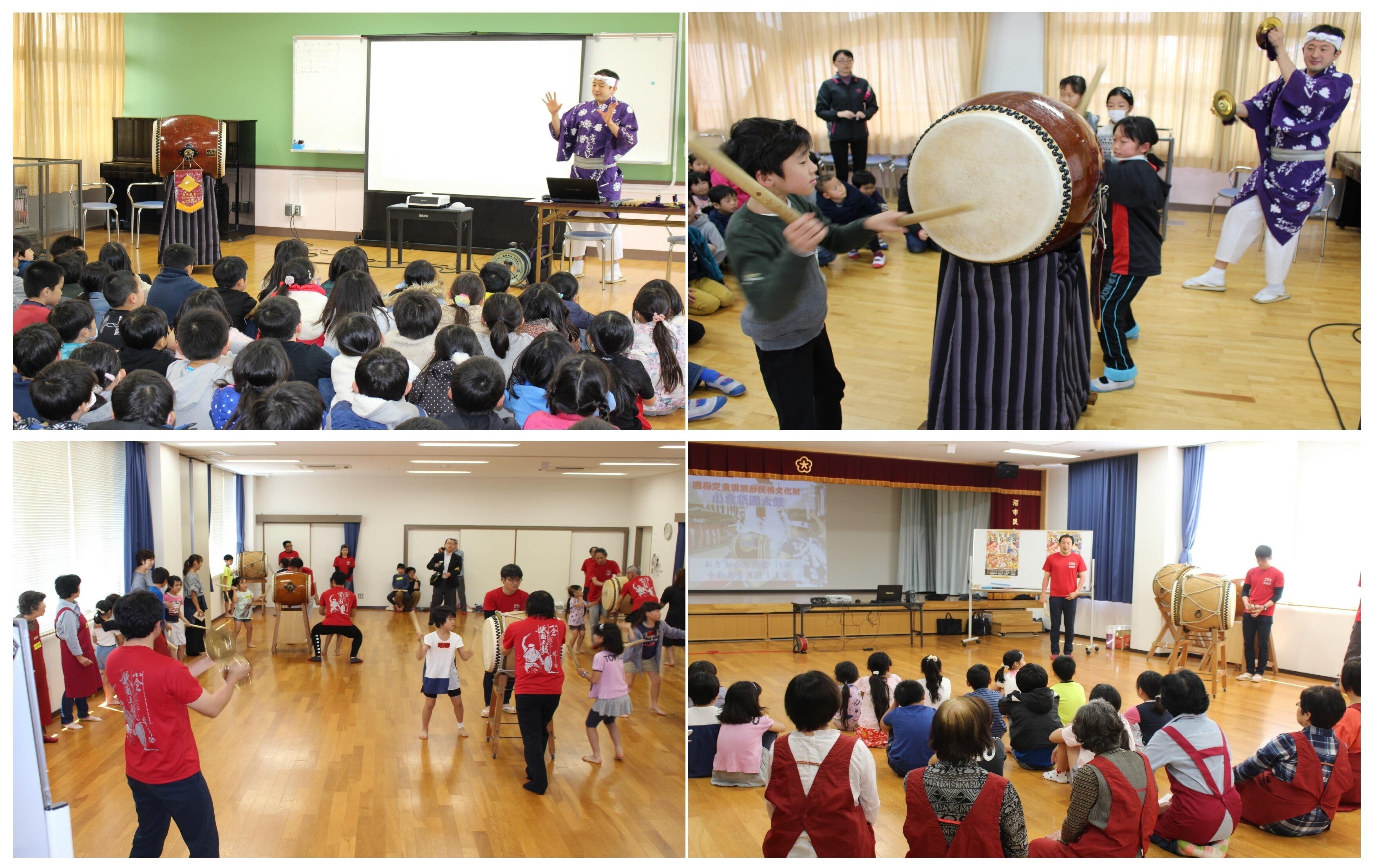 2022/06/04 12:00小学校の太鼓塾も再開後2回目となりました。霧丘小学校の4年生約80名を対象に実施しました。お祭りが開催されるのは子どもたちが1年生の時以来で、また小倉祇園太鼓保存振興会に所属する団体が霧丘小学校校区にはないこともあり、お祭りを実際に見たことがない子も多く、初めて太鼓に触れる子がほとんどな状況です。今日は太鼓の実演から披露し、子どもたちの興味を誘います。そして、小倉祇園太鼓の歴史や特徴、まちの歴史についても触れていきます。子どもたちの反応もとても良く、質問にもたくさん答えてくれました。意外に思ったのは、子どもたちが日本の近代史についてほとんど知らなかったこと。こうした活動を通して、お祭りのことに限らず、子どもたちにとってのさまざまな学びの場となれたら、と改めて気付かされました。いよいよ太鼓体験の時間。子どもたちは、太鼓を叩いていないときも、素振りをしながら順番を待っていました。「早く叩けるようになりたい。」そんな意気込みがひしひしと伝わってきます。担任の先生にもいっしょに体験していただきました。最後に「また太鼓を叩いてみたい人?」という質問には、ほとんど全員の子どもたちが手を挙げてくれました。太鼓塾を通して、小倉祇園太鼓に興味を持ってもらい、そしてお祭りに実際に参加する子どもたちがひとりでも多く増えることが私たちの願いです。 もっと見る【5月19日 日明小学校】2年4カ月ぶりに太鼓塾を再開しました!